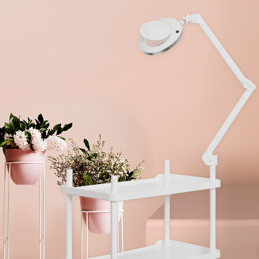 For professional use, the Comfortel Luma is a single, powerfully bright, new magnifying lamp. The lamp combines a large magnifying lens with 48 SMD LED bright lights, so you can see larger and clearer. The LED technology is packed into this beautiful design, and it is geared to provide premium illumination to all our beauty therapists.