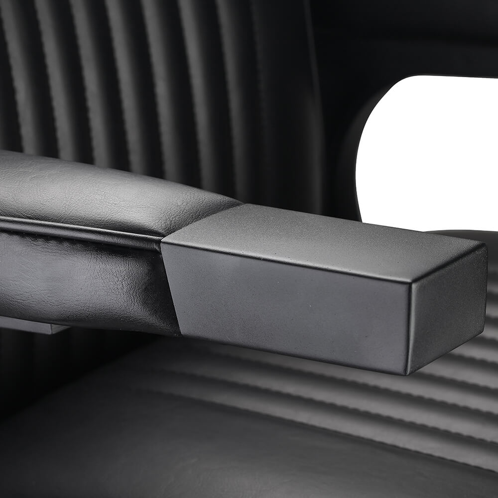 He is the night. He is Bat man. Inspired by the dark crusader, the bat man is a compact barbers chair for the dark knights who love everything black. With all Matte Black Metal details, the design features horizontal stripes upholstery while the comfortable and supportive seat is firm and well supported.